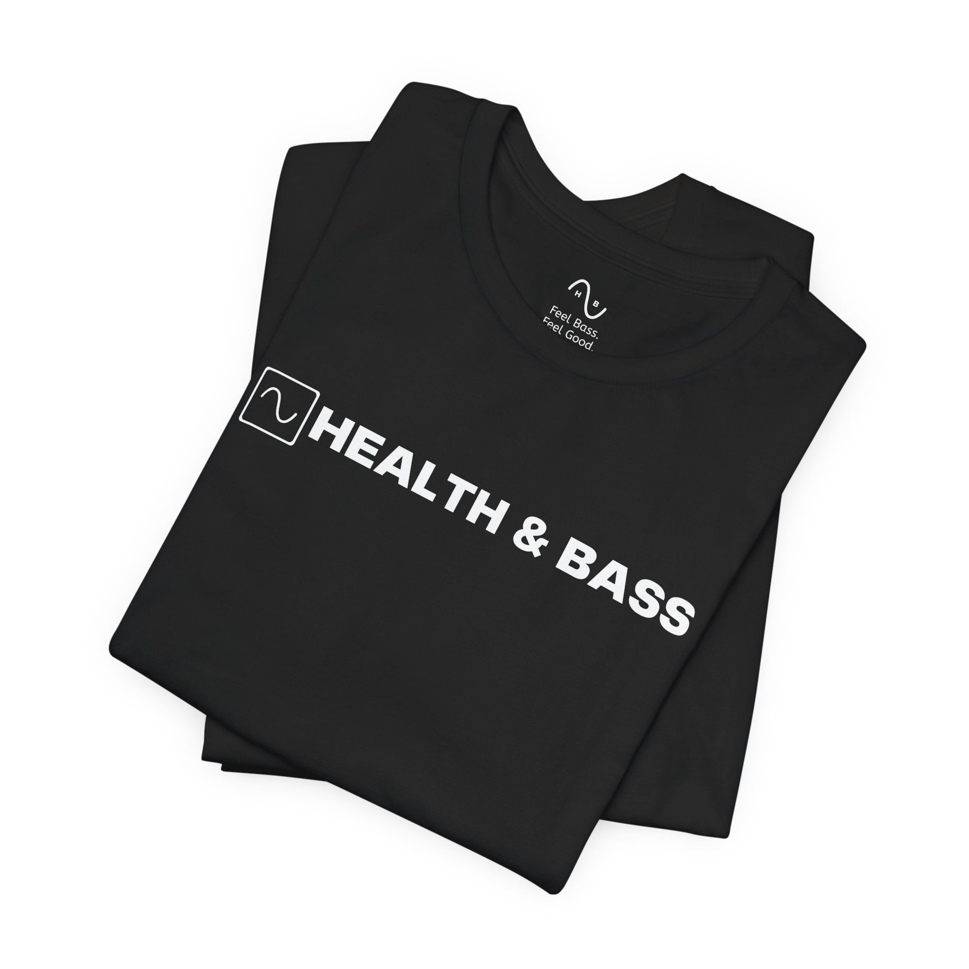 Features the Health & Bass logo on the chest.